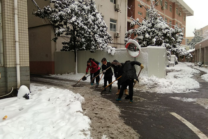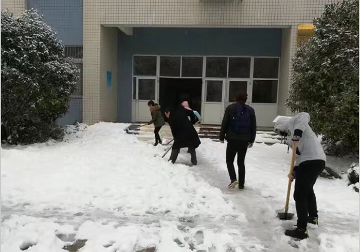 1月3日,合肥迎来2018年的第一场雪,厚厚的白雪覆盖了整个校园,大雪带来清新空气与美景的同时,也使道路、树木积雪严重,给广大师生的出行带来极大不便。校领导对雨雪、冰冻天气安全防范工作做出部署,学校相关部门迅速行动保障校园安全,于此同时全校党员干部、师生志愿者等也自发加入到清扫校园积雪的行列中。