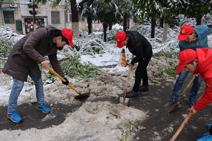 5日,持续的降雪已经在校园形成了10多厘米厚的积雪,被积雪压断的树枝散落在校园各处,越来越多的师生加入到除雪的队伍中来,忙碌的身影成为校园里一道亮丽的风景。