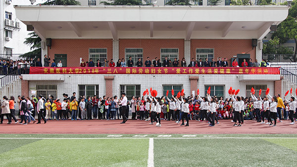 阳春三月,春暖花开。3月30日下午,我校庆祝2018年“三八”国际劳动妇女节系列活动之一嘉年华趣味运动会在梅山路校区操场举办。校党委书记李俊出席开幕式并宣布运动会正式开幕。