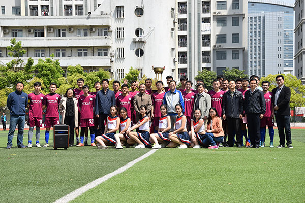 4月15日,我校2018年大学生足球联赛决赛在绿茵场上上演。校党委副书记刘群英观赛,并为获奖队伍颁奖。