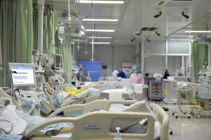 为全力提升急危重症救治水平,医院第一时间成立了新冠病毒感染救治工作领导小组,由党委书记和院长担任组长,其余院领导班子成员担任副组长,相关职能部门和临床科室负责人担任组员,全面领导医院各项新冠感染救治工作。院党委书记和院长带头,其余院领导率先垂范,每日深入重点区域现场了解实际情况,现场解决实际问题。院长定期主持召开新冠病毒感染救治工作领导组会,对每天全院的救治情况进行全面跟踪、分析、调整。成立新冠病毒感染救治和病例诊断专家组,覆盖呼吸内科、感染科、重症医学科、急诊内科等多个领域专家,随时准备对疑难急危重症患者进行多学科联合诊疗。