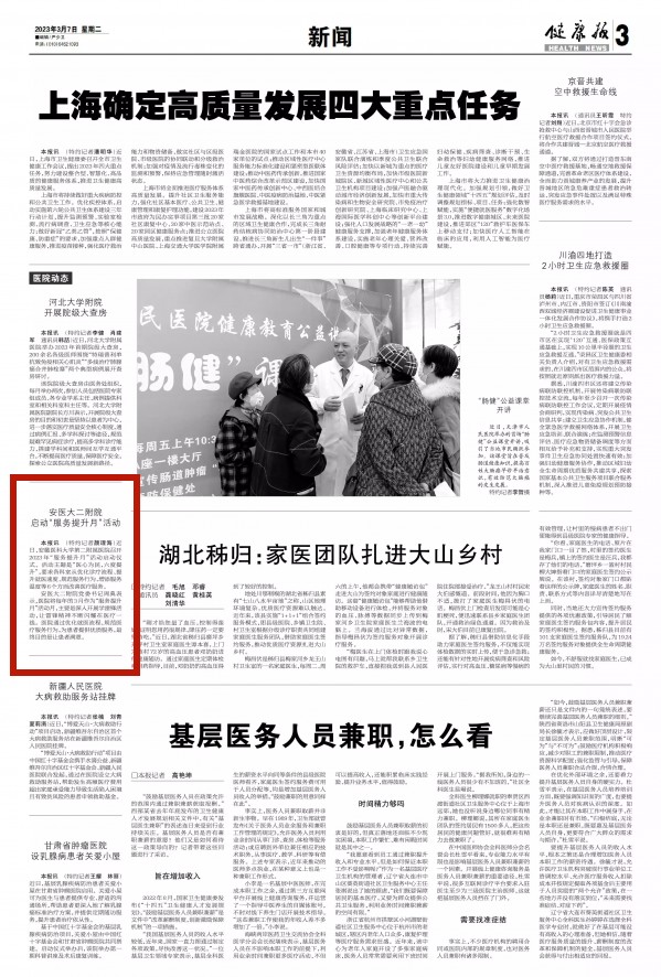 安医大二附院党委书记周典表示,医院将每年的3月作为“服务提升月”活动月,主要是深入开展学雷锋活动,让雷锋精神不断闪耀在医疗一线。医院通过优化就医流程,规范医疗服务行为,为患者提供优质服务,最终目的是让患者满意。