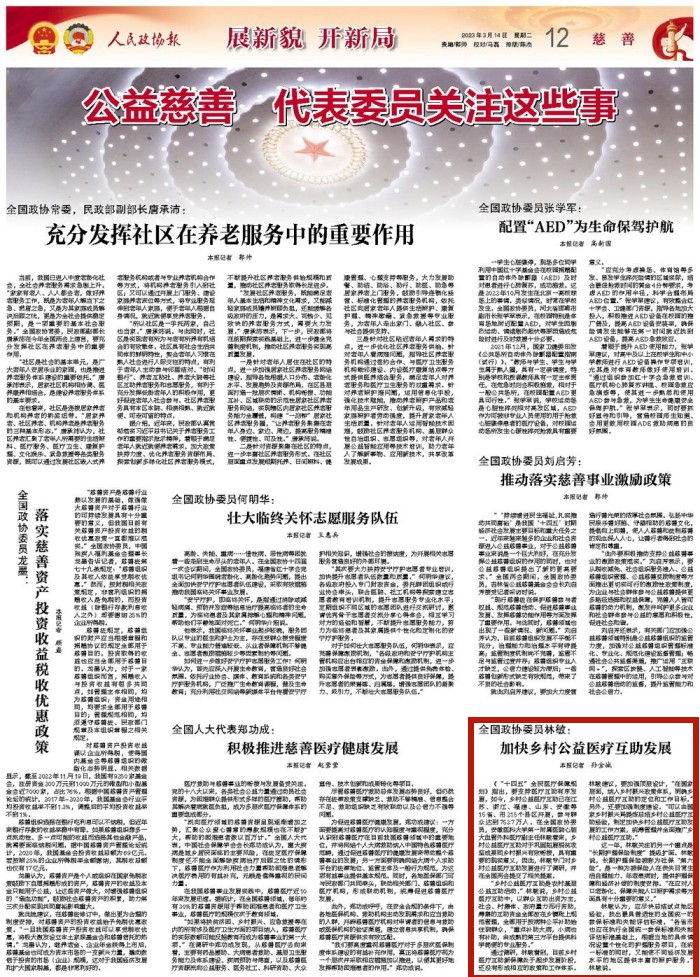 《“十四五”全民医疗保障规划》指出,要支持医疗互助有序发展。如今,乡村公益医疗互助已在江苏、浙江、福建、山东、安徽等 15省、市215个县区开展,参与群众达到753.7万人。在全国政协委员,KY.COM开云体育(中国)科技公司第一附属医院心脏大血管外科医疗副主任林敏看来,乡村公益医疗互助对于巩固拓展脱贫攻坚成果同乡村振兴有效衔接,具有重要的现实意义,因此,林敏专门对乡村公益医疗互助发展进行了调研,并在全国两会提交了相关提案。