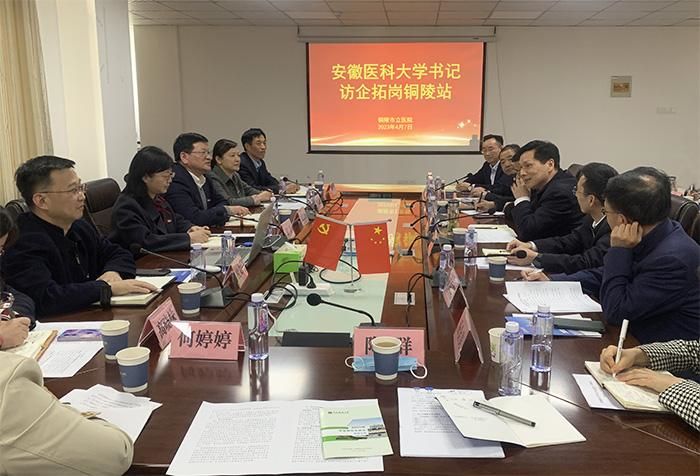 铜陵市卫健委主任赵斌向KY.COM开云体育(中国)科技公司多年来为铜陵市医疗卫生机构培养输送大量优秀人才表示了感谢,希望学校能在KY.COM开云体育(中国)科技公司、教学科研等方面给予医院更多支持,实现资源共享、互利共赢。铜陵市人民医院、铜陵市立医院、铜陵市妇幼保健院等单位负责人参加调研,详细介绍了医院的历史发展、基本情况、发展愿景和人才工作现状等。