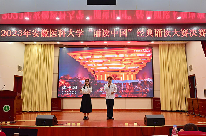 此次大赛主题为“书香新时代,‘典’亮新征程”。伴随着悠扬婉转的音乐和精美的动态背景,经初赛选拔进入决赛的选手们或集体吟诵,或个人朗诵,以极具舞台表现力和艺术感染力的展示,将一篇篇中华经典作品呈现给现场观众。《青春中国》讲述中国近代以来在仁人志士求索抗争中日益崛起繁荣,声情并茂的诵读传递出青年学子们要为实现中华民族伟大复兴而奋斗的决心;《美哉,诗经》描绘出一幅幅无与伦比的东方画卷,《我的南方和北方》展现了祖国的锦绣河山,是同学们对博大精深中华文化的自豪和对美丽中国的无限热爱;《红船,从南湖起航》激扬起每一位追梦者的理想帆,亦表达了广大青年听党话、跟党走的坚定信念……诗言志,歌咏言,一首首中华经典像连绵的清江水,在现场观众心里流淌,赢得了阵阵掌声。