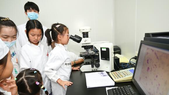 7月28日,安徽省公共卫生临床中心(安医大一附院北区)举办第三期儿童医学夏令营活动,来自合肥及周边城市的近百名孩子“变身”小医生,上了一堂沉浸式健康科普课。