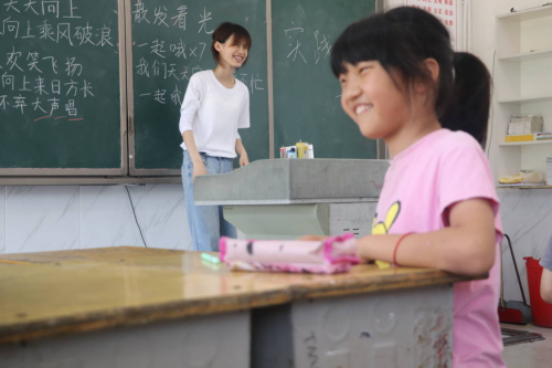 平时的教学课堂里,除了有专门的支教老师给孩子们进行教学,团队还安排了其他志愿者进行辅助教学,以便更好地维护课堂秩序。