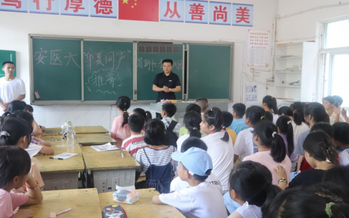 为更好服务乡村地区的留守儿童,帮助他们更好的学习成长,促进普通话的全面推广,由我院学生组建的“三下乡”校级重点团队——“华夏同声”推普暑期社会实践团于7月10日奔赴阜南县于集乡开展暑期支教活动。
