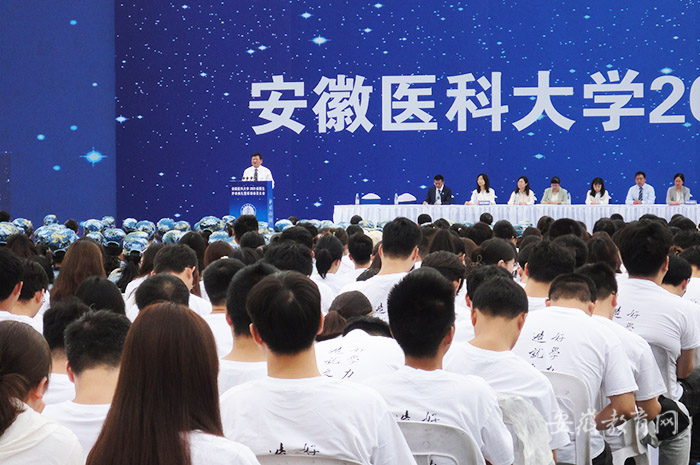 顾家山勉励同学们从学校的创业历程中汲取精神营养,追逐人生新的目标,创造青春新的辉煌。他对新生提出四点希望。一是涵养家国情怀,点燃人生理想。要把爱国心、报国情、强国志刻印在青春的记忆里,胸怀家国天下,肩扛使命担当,将个人“自转”汇入时代“公转”,在安医大这片热土上留下无悔足迹。二是不负青春韶华,激昂奋斗旋律。要传承校训精神,敏而“好学”,努力练就一身“硬功夫”“好武艺”;躬身“力行”,读好“有字之书”和“无字之书”,走出“舒适圈”,挑战“不可能”,在青春的赛道上跑出当代安医人的最好成绩。三是勇立时代潮头,澎湃创新动力。要把握与历史先贤“跨时空对话”、与当代大家“零距离接触”的机会,培养创新精神,强化创新意识,提高创新能力,不断翻越学业上的“大江大河”和“崇山峻岭”。四是修炼仁心仁术,争做大国良医。要赓续安医传统,践行安医精神,锤炼安医品格,立大志、明大德、成大才、担大任,竭尽全力除人类之病痛,助健康之完美,维护医术的圣洁和荣誉,努力成长为医德高尚、医术精湛的人民健康守护者。