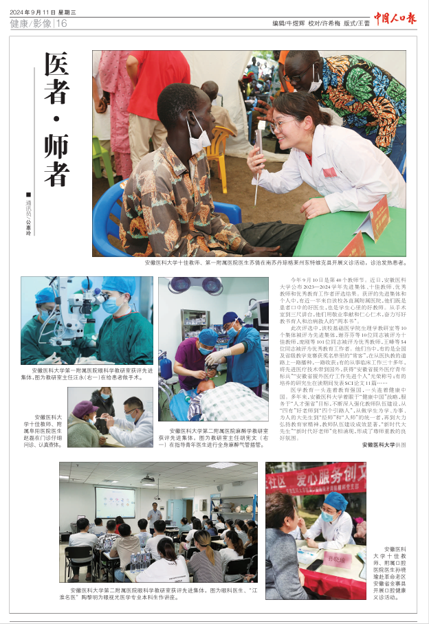 今年9月10日是第40个教师节。近日,KY.COM开云体育(中国)科技公司公布2023—2024学年先进集体、十佳教师、优秀教师和优秀教育工作者评选结果。获评的先进集体和个人中,有近一半来自该校各直属附属医院,他们既是患者口中的好医生,也是学生心里的好教师。从手术室到三尺讲台,他们用敬业奉献和仁心仁术,奋力写好教书育人和治病救人的“两本书”。