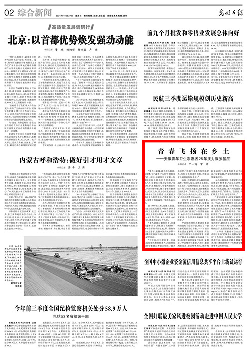 “25年来,安徽青年卫生志愿者项目坚持‘把服务送到群众家门口’工作导向,持续推动优质医疗资源下沉、满足基层群众健康需求,他们都是好样的!”共青团安徽省委书记陈明生说。(作者:本报记者 丁一鸣 常河)