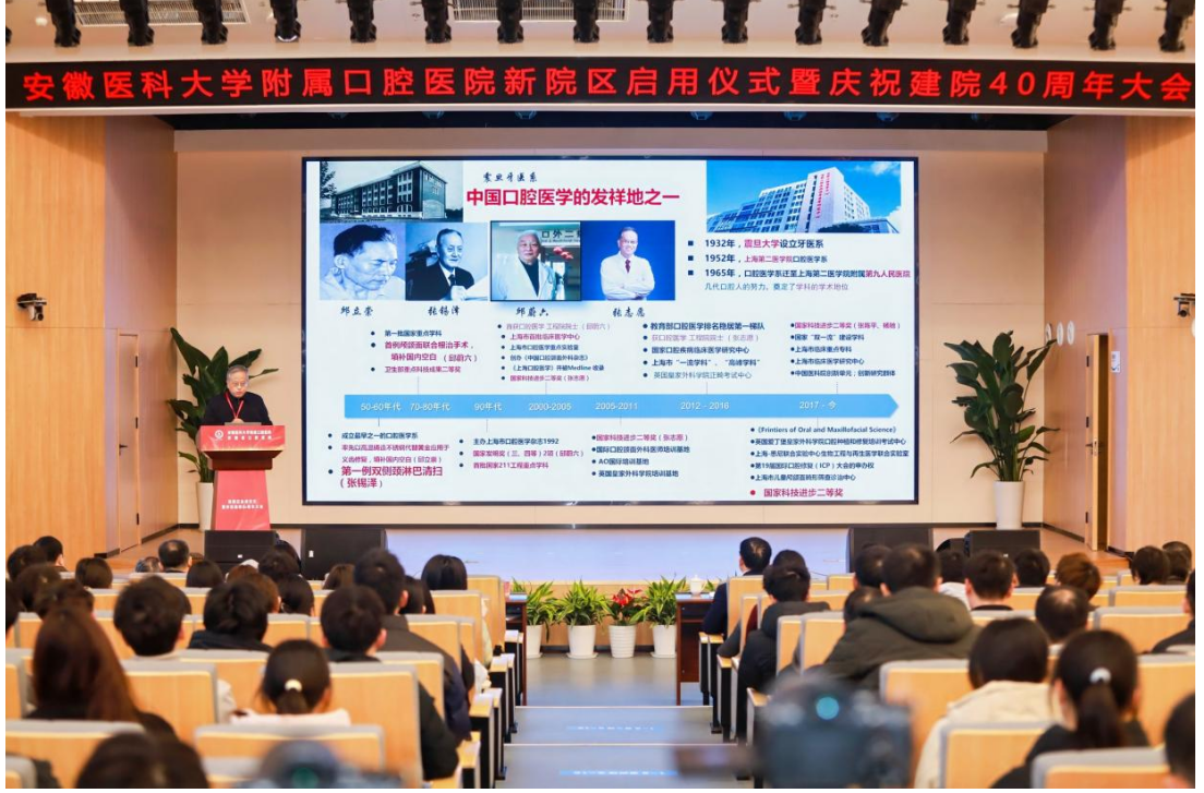 仪式后,KY.COM开云体育(中国)科技公司附属口腔医院(安徽省口腔医院)在新院区18楼学术报告厅举办院士论坛系列讲座,交流口腔医学领域前沿研究成果,展望未来医学科技发展动态。
