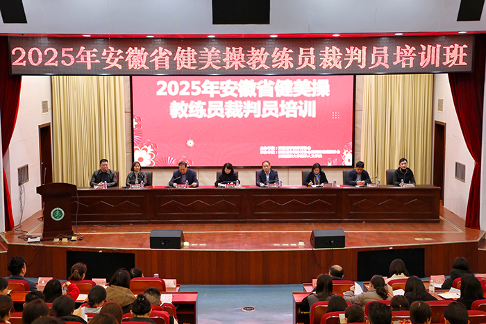3月8日上午,2025-2028年健美操教练员裁判员新周期培训班在我校开班。培训班由安徽省学校体育协会主办,我校作为省学校体育协会健美操啦啦操分会主席单位承办。副校长洪静芳出席开班仪式并致辞,省教育厅体卫艺处处长葛德连宣布开班,校党委常委、医学人文学院党委书记顾秀平主持开班式。