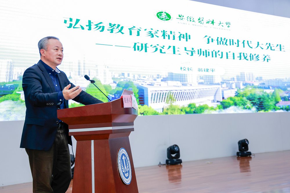 在题为《弘扬教育家精神,争做时代大先生——研究生导师的自我修养》的主题报告中,翁建平围绕“加强导师队伍建设是时代所需”“我校研究生及导师队伍现状”“如何做一名优秀的研究生导师”三方面展开讲授。在讲到“如何做一名优秀的研究生导师”时,他以曹云霞、梁朝朝、汪凯等为代表的“徐叔云讲席教授”的育人事迹为切入点,结合自身担任26年研究生导师的切身体会,分享了与学生相处的点点滴滴。他表示,新时代导师要把握学生特点,不做“命令式导师”,真正把学生身心健康和成长成才放在心上、抓在手中、落实到行动里。