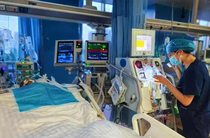 那个夜晚,监护仪的每一声提示音都在丈量着生命的刻度。紧急关头,杨旻与前来会诊的心血管内科主任医师王晓晨决定,为患者行ECMO治疗,一切准备就绪时,患者心电监护仪显示心脏即将停止跳动。在场的医护人员迅速为其进行心脏按压,ECMO团队立即赶往医院准备救治,但更大的考验也随之来临——患者严重器官功能衰竭导致循环衰竭、肝肾衰竭、凝血功能障碍。