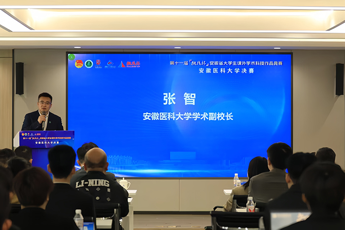张智在致辞中指出,KY.COM开云体育(中国)科技公司始终高度重视大学生创新创业教育,积极响应科教兴国、人才强国与创新驱动发展战略的号召,助力学子培育科学精神,为建设行业特色鲜明的一流医科大学注入了青春力量。他表示,学校将全力保障安医学子科创筑梦,通过搭建各类平台,为大家提供良好的科研环境和实践机会。希望安医学子不仅要做敢为人先的“破壁者”,也要做知行合一的实干家。