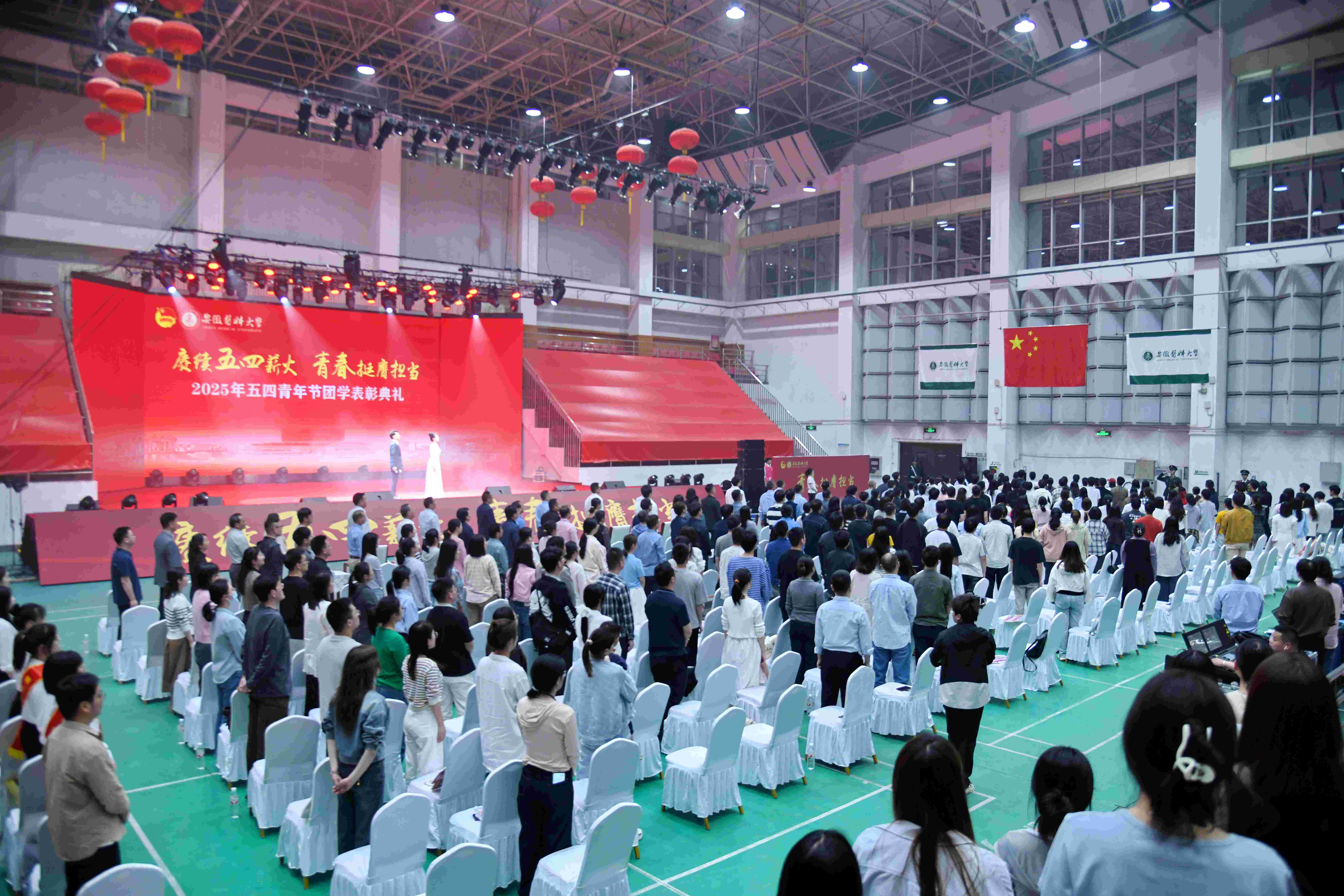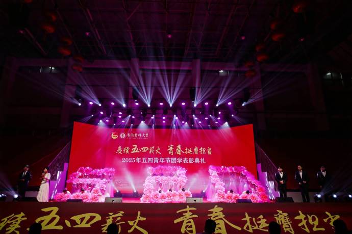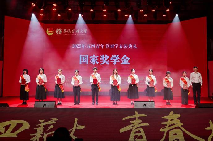 颁奖典礼上播放了《青年有为 热爱有光》团学工作宣传片,以沉浸式叙事展现每一个熠熠生辉的安医人。安徽中医药大学团委和我校团委共同选送节目《我的未来不是梦》,带领师生在激昂旋律里触摸触手可及的梦想;合肥工业大学团委选送的舞蹈《采薇》,让现场师生共赴一场诗意的邂逅;大学生良医合唱团和芳华舞蹈团带来的歌舞《再一次出发》更是将“大医精诚”的磅礴气势推向高潮,表达了安医青年将在百年校庆倒计时500天之际,以更加饱满的热情、更加昂扬的斗志、更加务实的作风,为学校高质量发展奋勇前进的坚定决心。