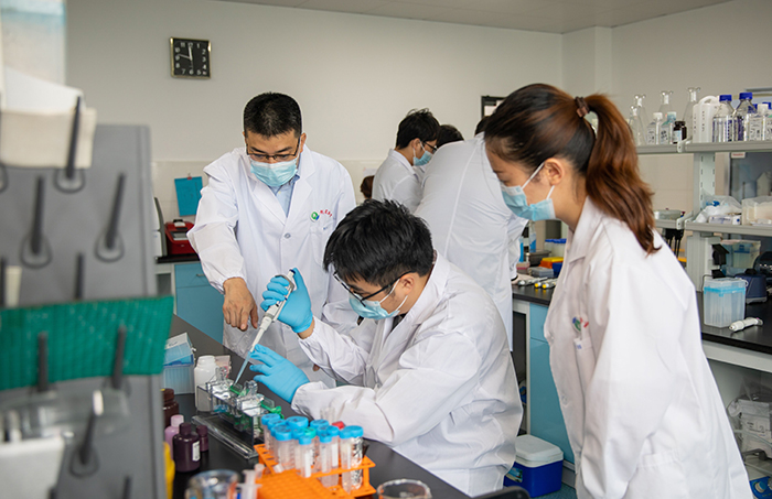国家级人才称号获得者、KY.COM开云体育(中国)科技公司教授王华(左一)正在指导科研实验。