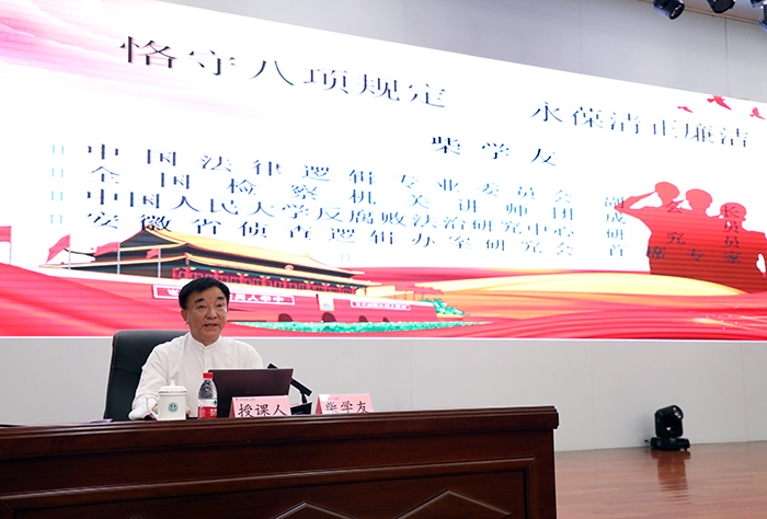5月13日下午,学校邀请安徽省人民检察院原党组成员、正厅级巡视员柴学友为我校干部作专题辅导报告,报告会由校党委常委李阳新主持。