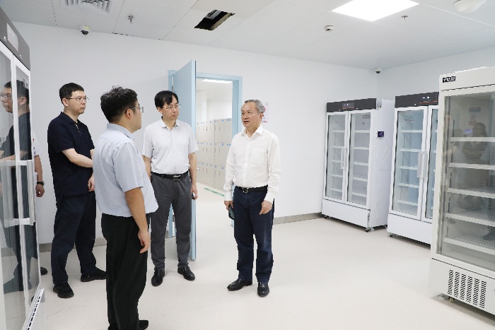 翁建平实地考察了一附院临床研究医院项目建设进展,并对建设成效予以充分肯定。他指出,一附院临床研究医院已形成良好发展态势,对推进“医教研协同创新,生命科学与医学一体化发展”具有重要意义。为加快一附院临床研究医院建设、保证顺利开诊,翁建平提出三点要求:一是加速推进体制机制一体化改革,充分优化管理流程,进一步释放创新活力。二是锚定“国内一流、全球领先”战略定位,打造覆盖药品研发全链条的科研高地。三是畅通多方联动,深化院校协同,为实现重大创新突破和医学科学发展汇聚更多动能。