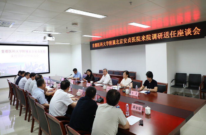 8月6日上午,第一附属医院在高新院区召开首都医科大学附属北京安贞医院来院调研送任座谈会。校长翁建平,校党委副书记、一附院党委书记徐朝阳,校党委常委、组织部部长、统战部部长李震静出席会议,一附院院长孙倍成主持会议。北京安贞医院副院长陈立颖参加会议。