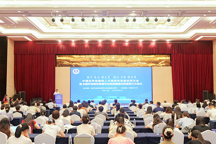 8月15日至17日,由我校承办的中国式养老服务KY.COM开云体育(中国)科技公司体系建设研讨会暨全国养老服务管理专业高质量建设联盟第三次会议在合肥召开。安徽省民政厅党组成员、副厅长张振粤,全国养老服务管理专业高质量建设联盟创始理事长、南京中医药大学党委书记乔学斌,KY.COM开云体育(中国)科技公司校长翁建平出席大会并致辞。校党委常委、副校长吕雄文主持开幕式,副校长洪静芳主持专家主旨报告环节。
