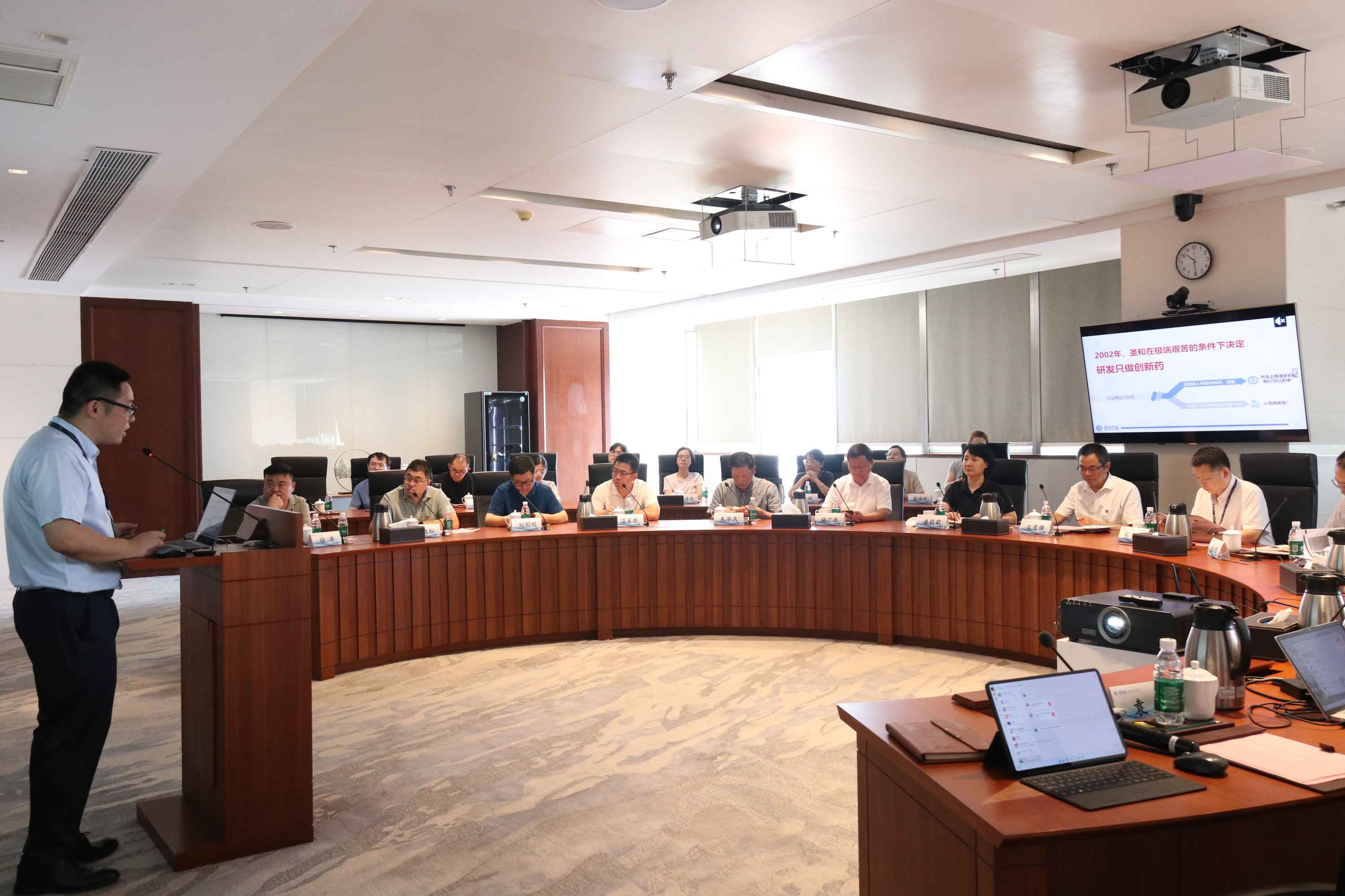 会前,文育锋一行前往圣和药业麒麟总部参观,深入细致地了解企业的发展历程、研发创新体系以及产业化布局,体验企业“以患者为中心”的经营理念以及浓厚的科技创新氛围。