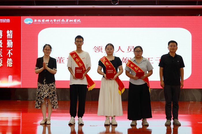 8月28日下午,第四附属医院“爱心助力 温暖医夏”志愿服务表彰大会在医院综合服务楼报告厅举行。院党委副书记葛丽丹为巢湖市第一中学赠送锦旗,院党委副书记余皖婉主持仪式。