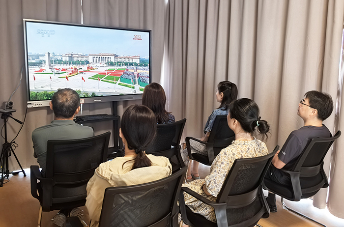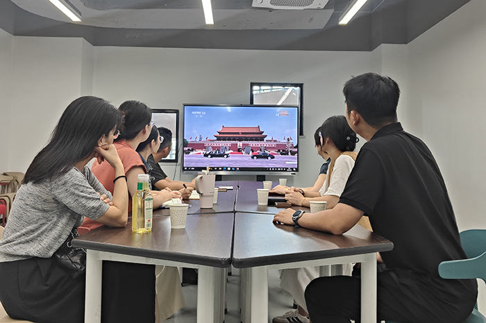 “阅兵仪式上展现的高科技装备,不仅彰显了我国国防实力的飞跃,更传递出一个清晰的信号:中国有能力捍卫自己的主权和领土完整。站在新的历史起点上,作为高校工作者,我们不仅要铭记历史,更要将其转化为前进的动力,用自己的热血和智慧为祖国教育事业添砖加瓦,并为实现中华民族伟大复兴而团结奋斗。”后勤保障部党委工作部部长张丽娟谈道。