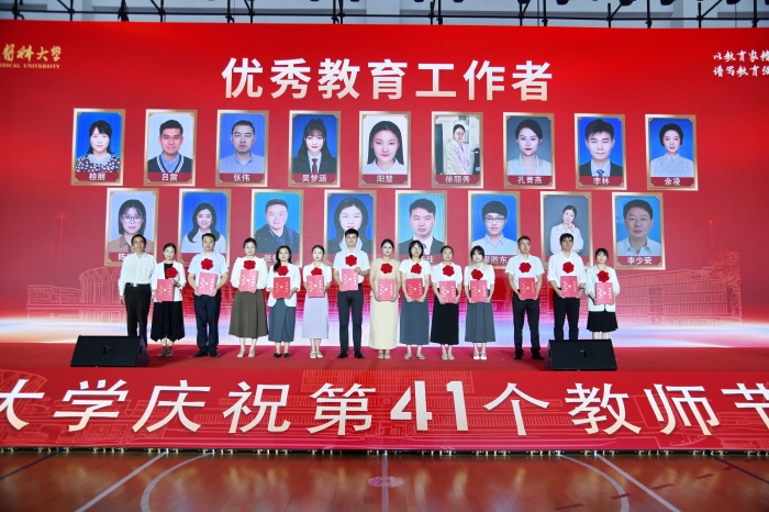 大会还表彰了10个“先进集体”、10位“十佳教师”、105位“优秀教师”、52位“优秀教育工作者”、10位“十佳辅导员”和14位“优秀辅导员”。表彰环节,受表彰者一一上台领奖,校领导班子成员为各奖项获表彰者颁奖。