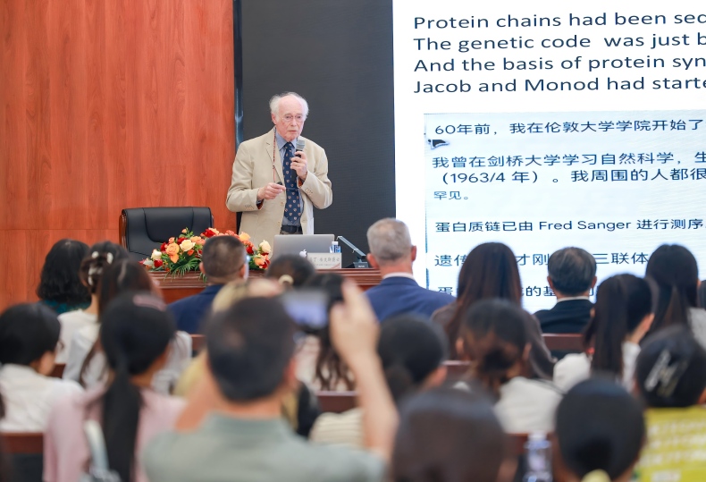 报告中,马丁·埃文斯教授阐述了小鼠胚胎干细胞的发现、发展及其作为遗传载体的作用,以及在基因功能和生物发育研究中的重要意义。他还以自己获得诺贝尔奖的经历,鼓励青年学子勇于探索未知领域。