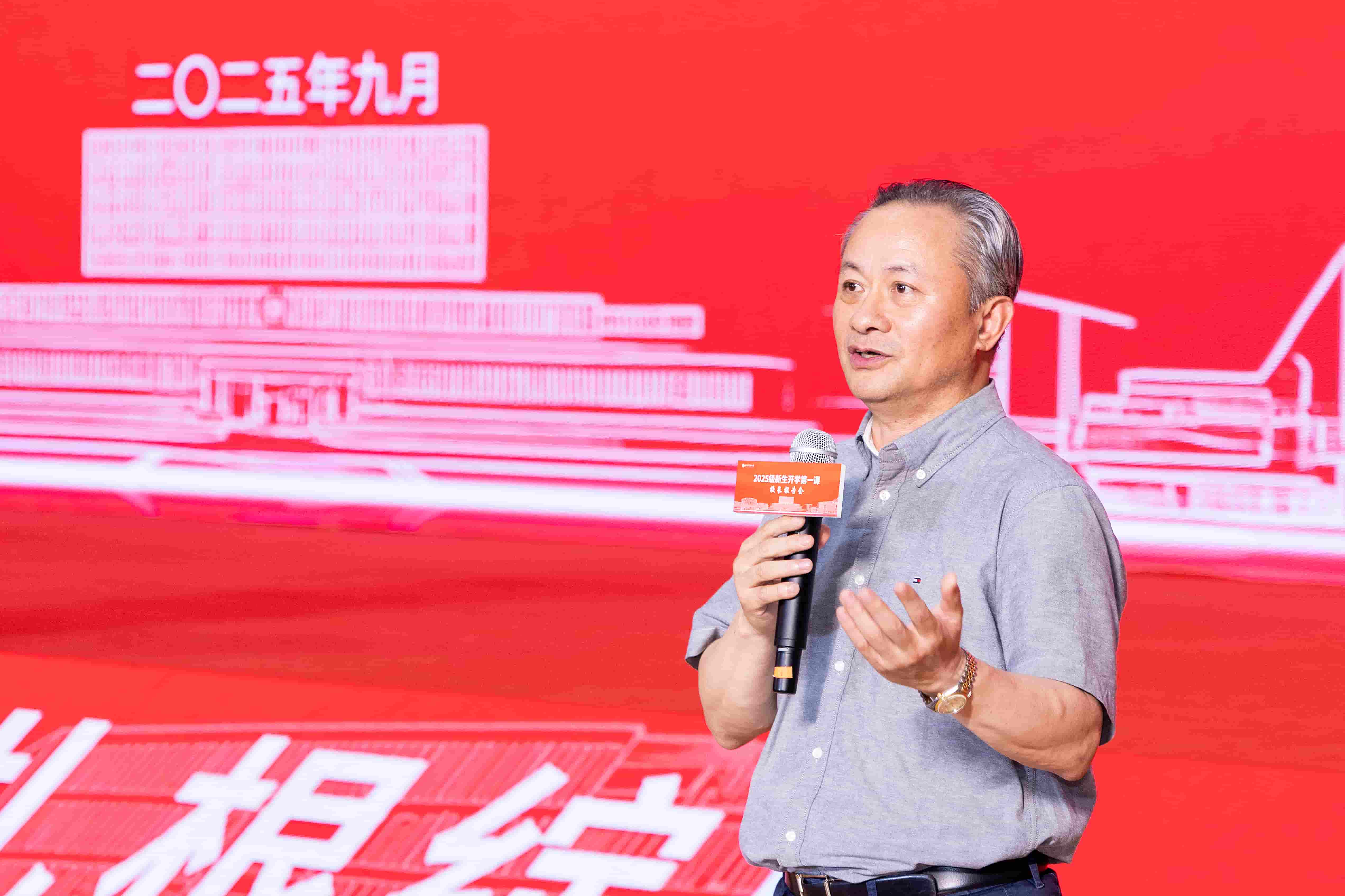 9月18日晚,校长翁建平在新医科中心综合训练馆为全体2025级新生讲授“开学第一课”,带领新生回顾学校百年发展历程,分享学校发展取得的重大成果和重大突破,勉励青年学子要以科学家精神为引领,立鸿鹄之志,成大国良医。校党委常委、副校长文育锋主持报告会。