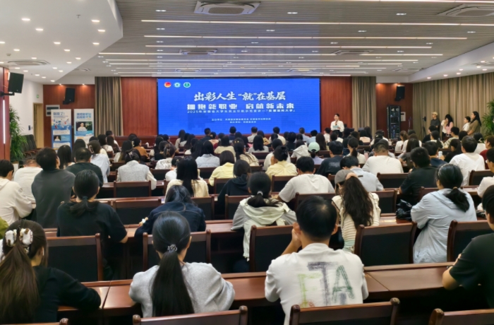 9月22日,“拥抱新职业,启航新未来”2025年安徽省大学生“就业引航”示范宣讲活动在我校新医科中心图书馆第二会议室举办。活动以“出彩人生,‘就’在基层”为主题,由团省委、省学联主办,百度基金会和我校承办。团省委副书记周宇,校党委常委、副校长邱志海,团合肥市委书记洪欣,团省委学校部二级调研员汪文斌出席,各学院团委书记、学生代表150余人参加,线上观看人数超过1万人。