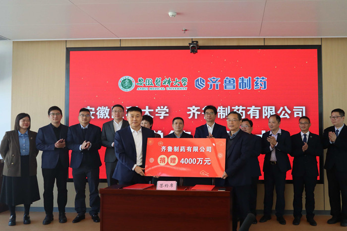 签约仪式后还举行了圆桌论坛与捐赠仪式。校科技产业部、人力资源部、社会合作处负责人,各直属附属医院以及非直属附属医院有关负责同志和研发人员,齐鲁制药集团相关业务板块负责人参加仪式。(社会合作处)