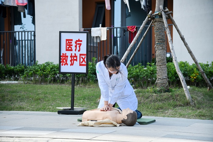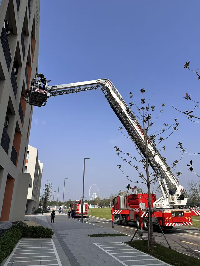 演练期间,肥西消防救援大队组织开展了人员搜救、云梯救援等演示活动,校医院医护人员对被救伤员进行了伤口包扎、心肺复苏等操作演示。