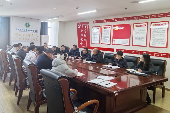 在听取药学科学学院学科建设方案汇报后,吕雄文强调,要深入学习贯彻党的二十届四中全会精神和校第九次党代会精神,通过深入调查研究,精准凝练学科优势方向,打造具有鲜明安医特色的学科品牌,推动提升我校药学学科在国内外学术界整体竞争力和影响力。他要求,要优化顶层设计,既攥指成拳发展优势学科方向,又注重各二级学科协同发展,将机构改革优势转化为学科发展胜势;要高质量完成学院在新医科中心科研平台建设方面的工作任务,将科研平台打造成为高层次人才引育摇篮;要加强与直属附属医院、生物医药企业的交流合作,以研制新药为突破口,推动基础研究与新药研发链条契合,实现产学研深度融合,更好服务于国家战略需求、区域经济发展和医药行业进步。
