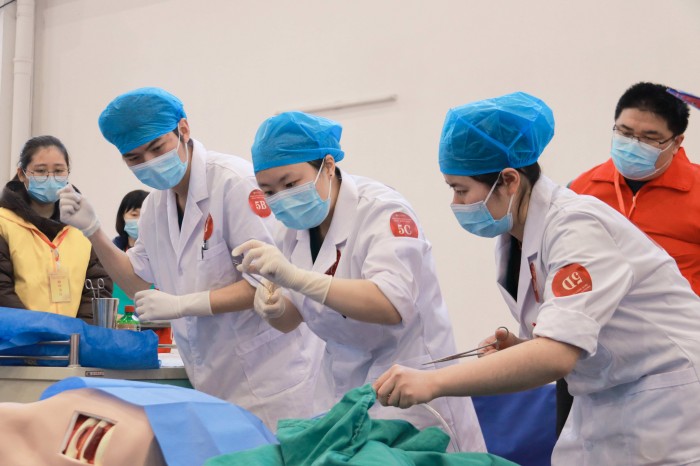 学校举办第十届大学生医学技术技能大赛(临床医学专业赛道)竞赛。(安医大供图)