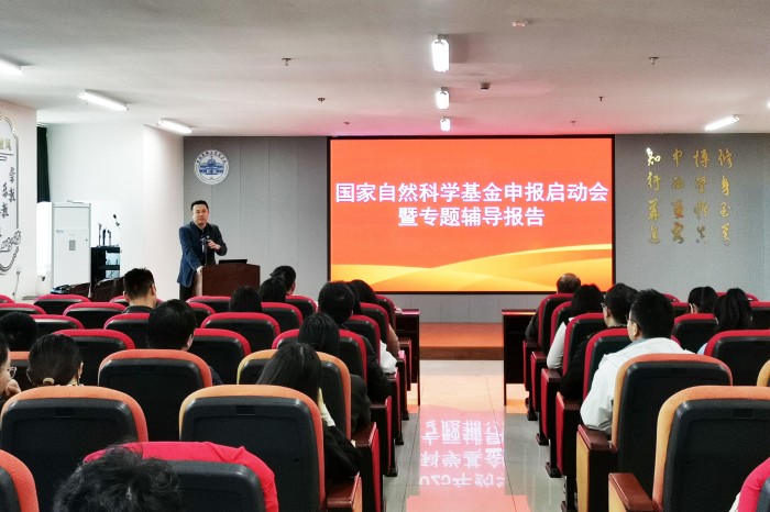 孟晓明教授为药学科学学院师生进行国家自然科学基金项目申报辅导。(安医大供图)