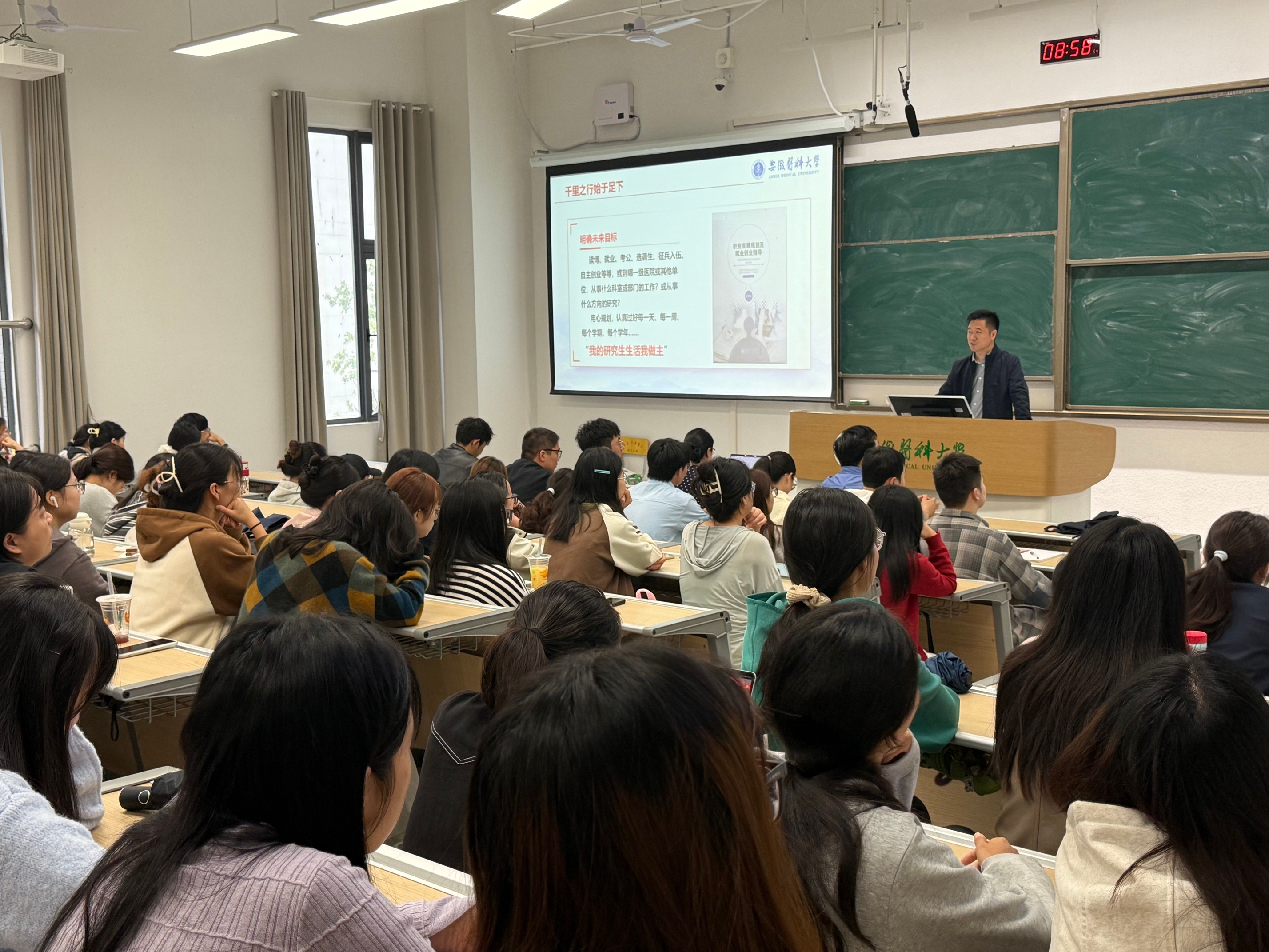 后续专题教育环节,学院相关内设机构及新生辅导员分别以主题班会形式,为新生介绍了研究生培养方案与模式、毕业及学位授予要求,讲解实验室安全注意事项,开展安全法治、心理健康教育,共同为新生的成长成才保驾护航。