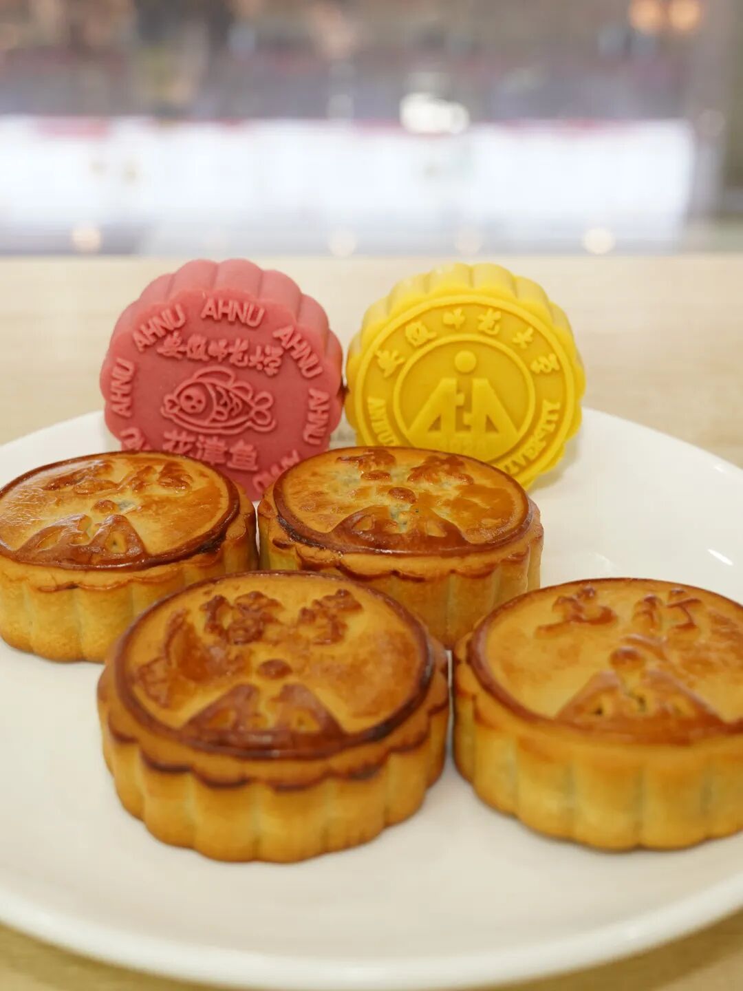 安徽师范大学也用六年的坚持,把月饼做成了“家的符号”。今年学校依旧推出专属文创月饼,将校园文化符号、校徽、校训精心融入传统月饼技艺,每一枚都做得精致又有温度。