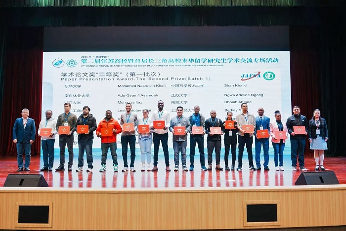 10月25日至26日,2025年“感知中国”第二届江苏高校暨首届长三角高校来华留学研究生学术交流专场活动在江苏大学举办。活动由国家留学基金管理委员会主办,江苏省高等教育学会外国留学生教育管理研究委员会与江苏大学共同承办,我校来自卢旺达的硕士研究生尤金(NSHIMIYIMANA EUGENE)表现突出,获学术论文二等奖与“最佳墙报奖”两项荣誉。