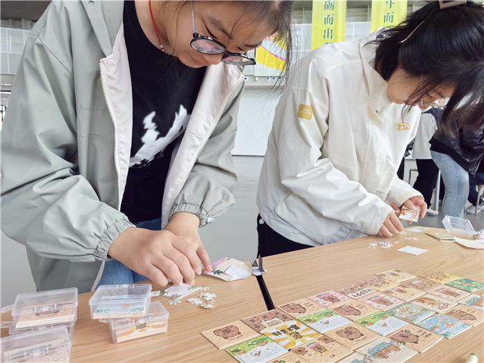 心弦编织心语采用毛线编织的方式,勾勒出对心理问题的解答,引发心灵共鸣,开启无声倾诉;心光寄语未来以文字描绘祝福,既是对他人的美好祝愿,又是对自身的未来期许;心镜言意相同通过成语谜题,实现古今对话;心途共筑完形在零散的拼图中进行拼合,帮助学生在聚精会神时忘记心中烦恼;心执破茧新生中将烦恼书写于纸上,置入气球后,用力将气球踩破,代表烦恼亦随之消失。