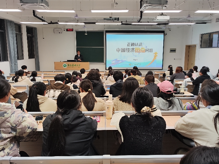 10月27日,校党委常委、副校长文育锋在知源楼A304教室为本科新生讲授题为《正确认识中国经济热点问题》的“形势与政策”课,引导同学们读懂中国经济运行的大逻辑,坚定对中国经济发展的信心。