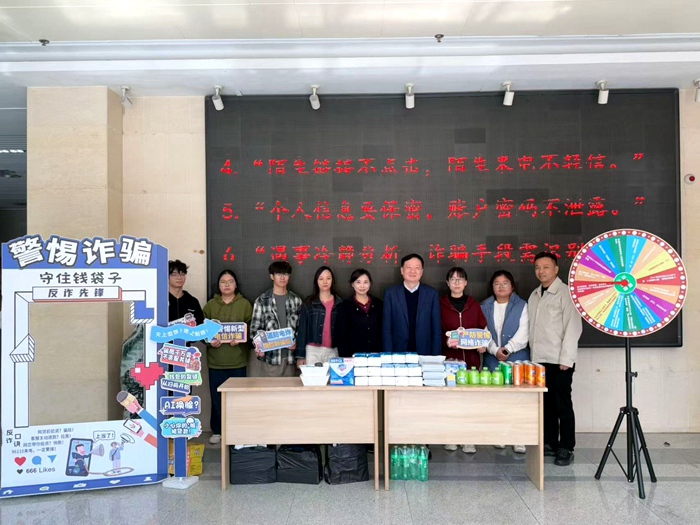 10月29日上午,学院学生安全教育委员化身“反诈宣传员”,通过查看反诈APP、现场讲解等多种形式,向同学们普及常见的电信网络诈骗手段和防范技巧。活动还设置了趣味问答环节,同学们积极参与,踊跃答题,在轻松愉快的氛围中学习反诈知识。周典、余皖婉在现场与同学们互动,并为他们赠送答题小礼品。