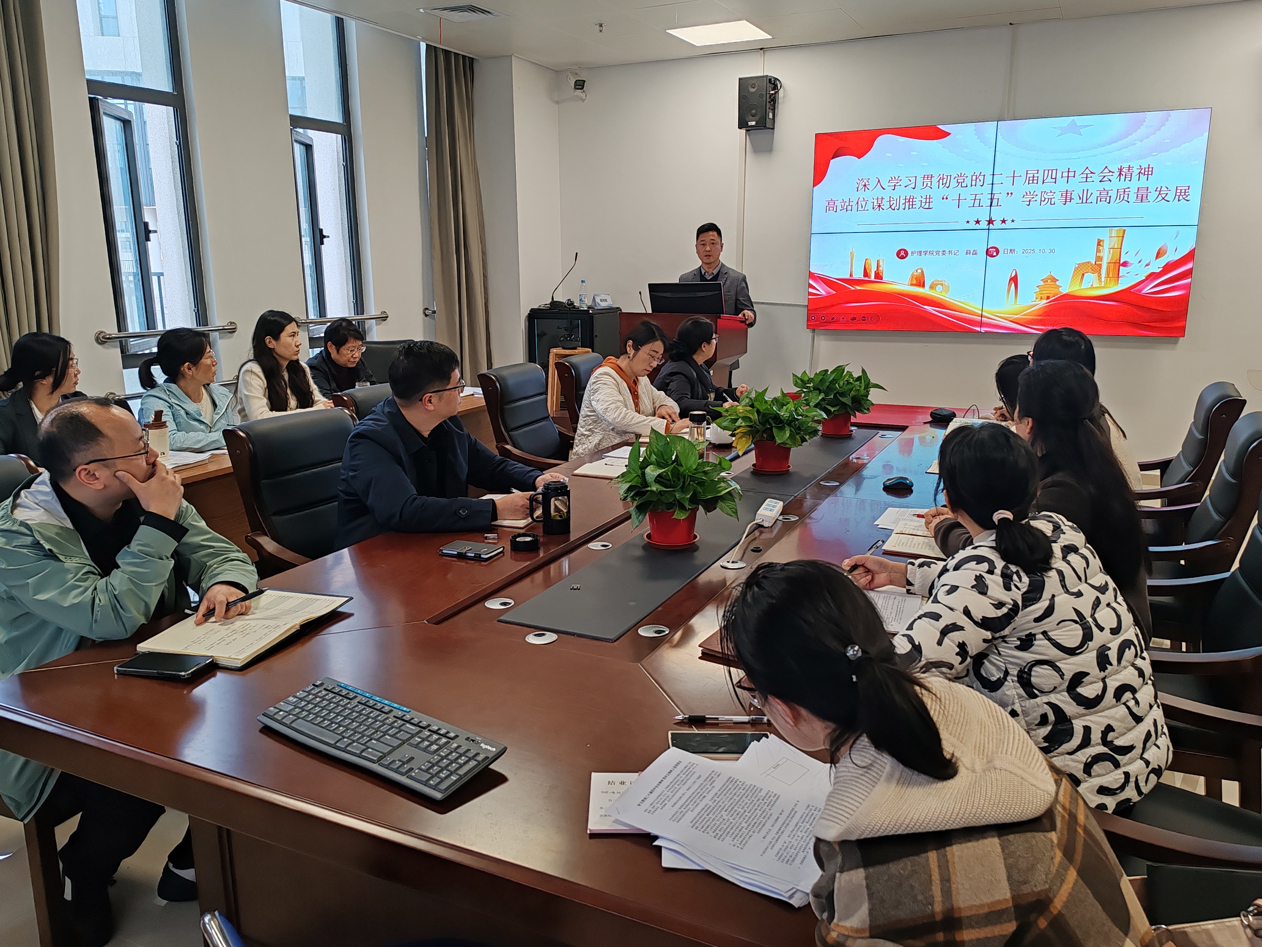 10月30日,护理学院党委理论学习中心组召开扩大会议,专题传达学习党的二十届四中全会精神,院党委书记薛磊主持会议并讲授学习贯彻全会精神的专题党课。
