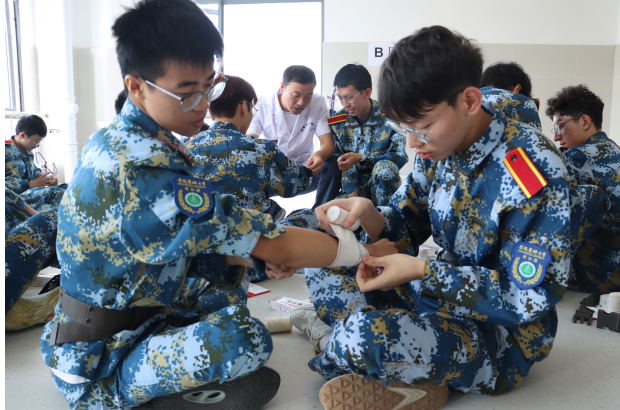 培训紧扣心肺复苏(CPR)与灾难现场初级救护两大核心救命技术,全面采用“理论+模拟+情景”三位一体的教学模式。在理论学习基础上,学生们通过在模拟人上进行反复的胸外按压、人工呼吸练习,熟练掌握了自动体外除颤器(AED)的使用方法;在创伤救护环节,则通过互相包扎、模拟场景搬运等实操,巩固了止血、包扎、固定、搬运四大技术。整个培训过程严谨有序,学生们学习热情高涨,在潜移默化中将“人人学急救,急救为人人”的理念深植心中。