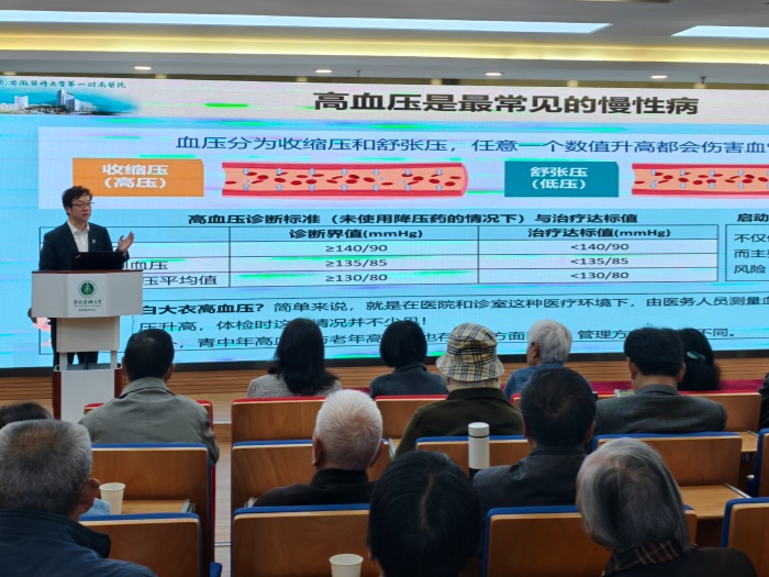 讲座聚焦老同志健康需求,涵盖多类体检健康指标与疾病防治要点。柯道正围绕“三高”管理,详细介绍了高血压、高血脂、高血糖的科学测量和治疗方法,深入剖析冠心病、心梗等并发症的防治要点,说明了“早发现、早干预、规范治疗”的重要性。针对血糖管理,他提出要特别关注糖尿病前期,并给出了居家测量与调整生活方式的实操建议。