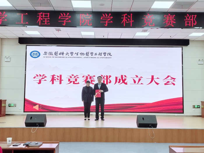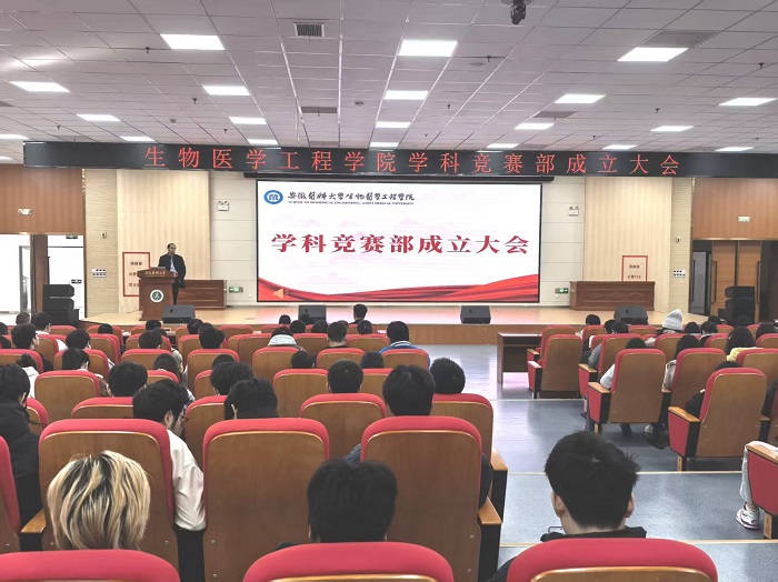 11月20日,生物医学工程学院学科竞赛部成立大会在铜陵路校区大学生活动中心举行。校科技产业部副部长、创新创业学院副院长王平,生物医学工程学院党委书记何婷婷、院长钱海生、副院长周金华等参会,院党委副书记周晓伟主持会议。