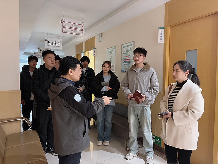 在广瑞医疗副总经理严红谊带领下,学院师生先后参观了企业健康管理服务中心、运营指挥平台及创新研发实验室,实地观摩了从客户咨询、健康评估到个性化服务方案制定的全流程运营体系,详细了解企业如何通过“线上平台+线下实体”的模式打通健康管理产业链。“原来创业不是靠一腔热血,每个环节的精准把控才是‘活下去’的关键。” 2024级健康服务与管理专业的马群欣同学在参观中不时记录,深有感触地说道。