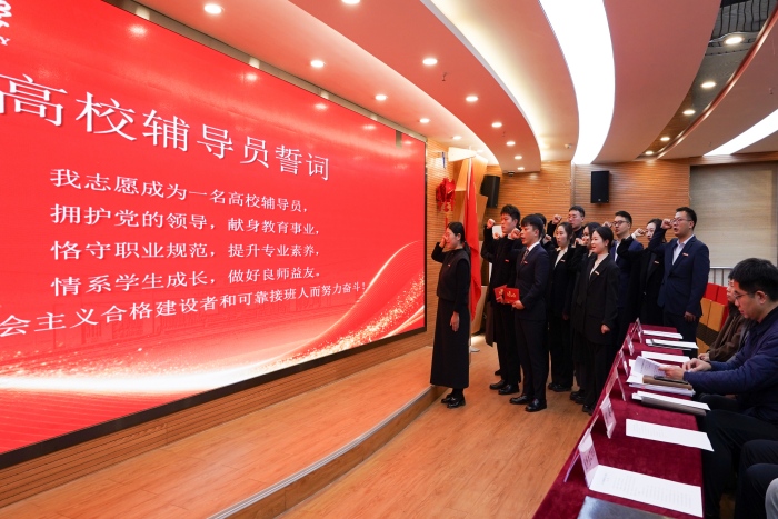 11月27日下午,学校在梅山路校区力行楼四楼报告厅举行2025年新聘辅导员入职仪式。校党委常委、副校长邱志海出席仪式并讲话。